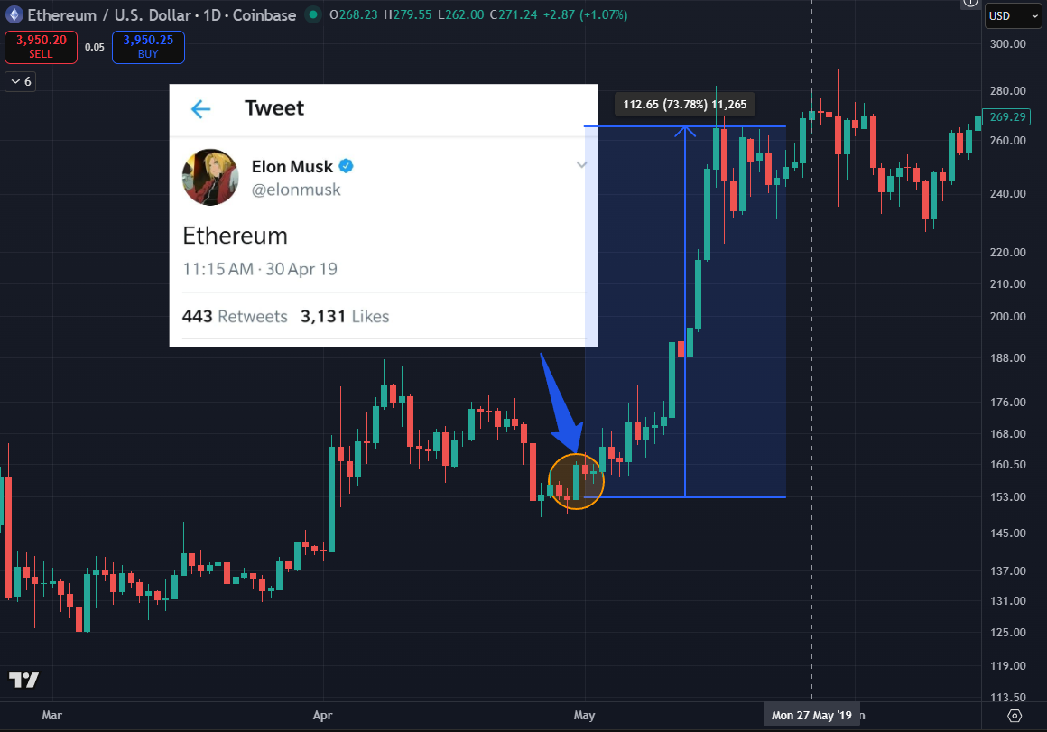 And when he tweets about DOGE, it pumps. Every. Single. Time.